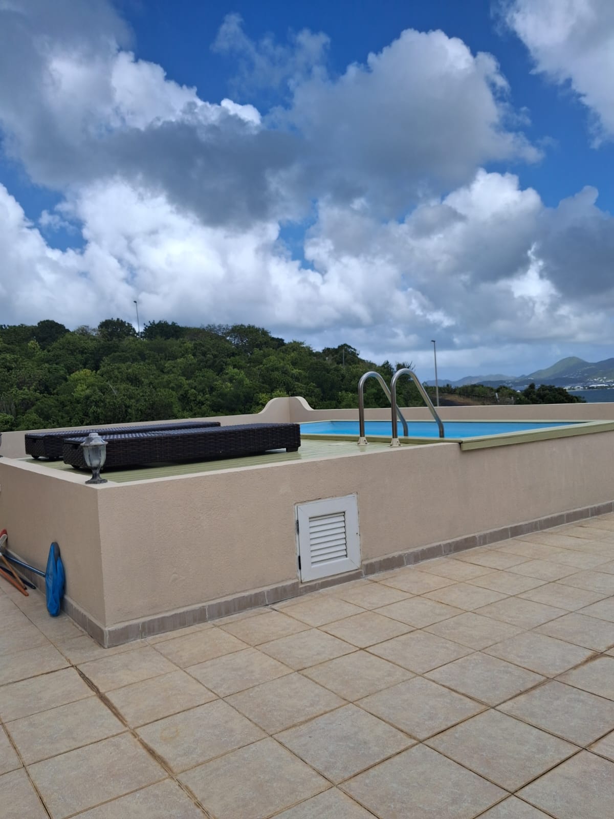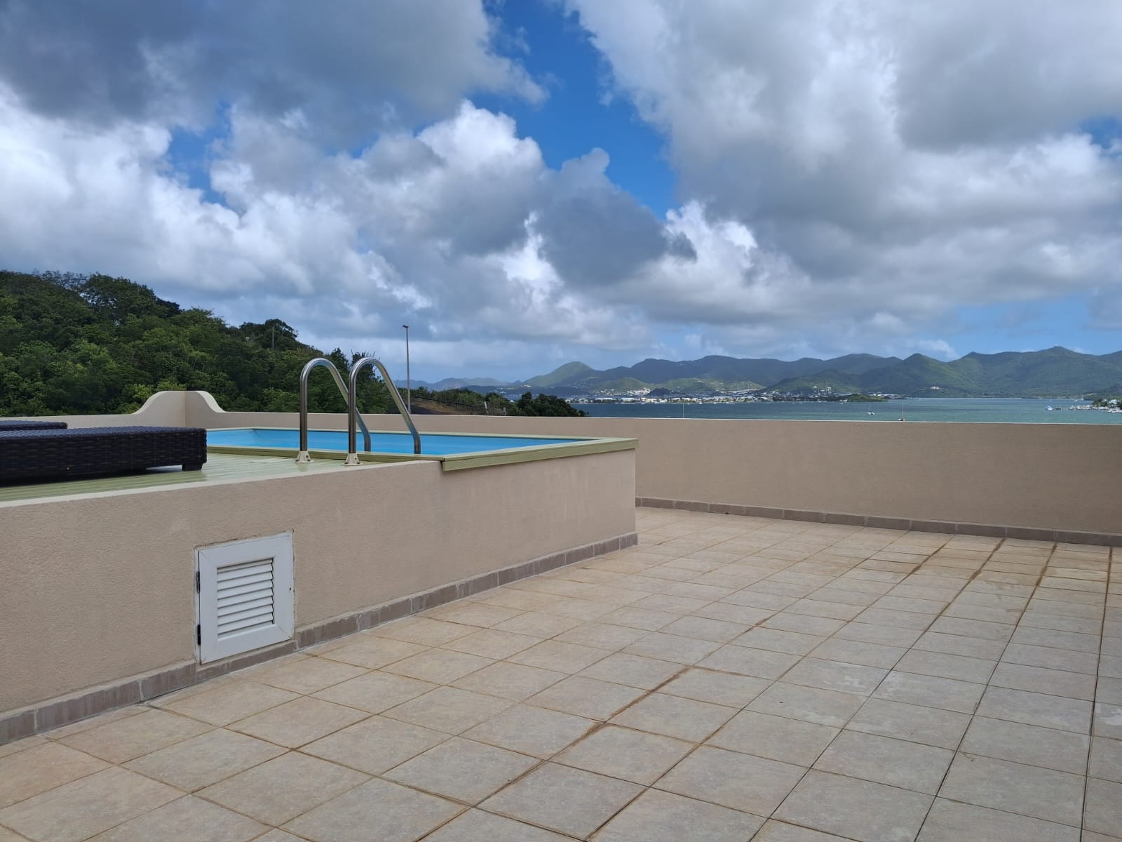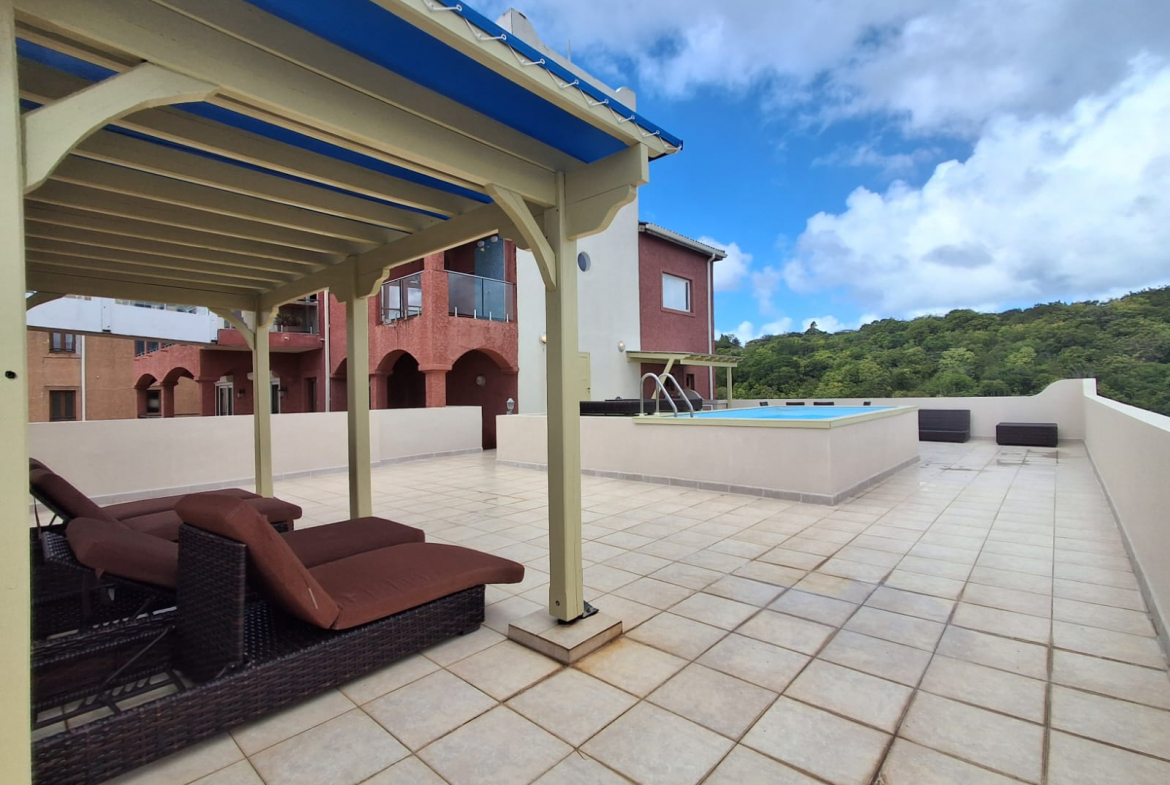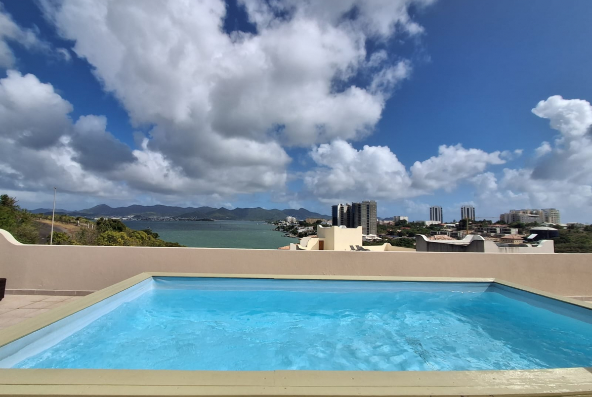 With an approximate total surface of 280 m² including terraces, this unique property features extraordinary volumes, 3.5-meter high ceilings, and breathtaking panoramic views over the marina, lagoon, ocean, and surrounding mountains.