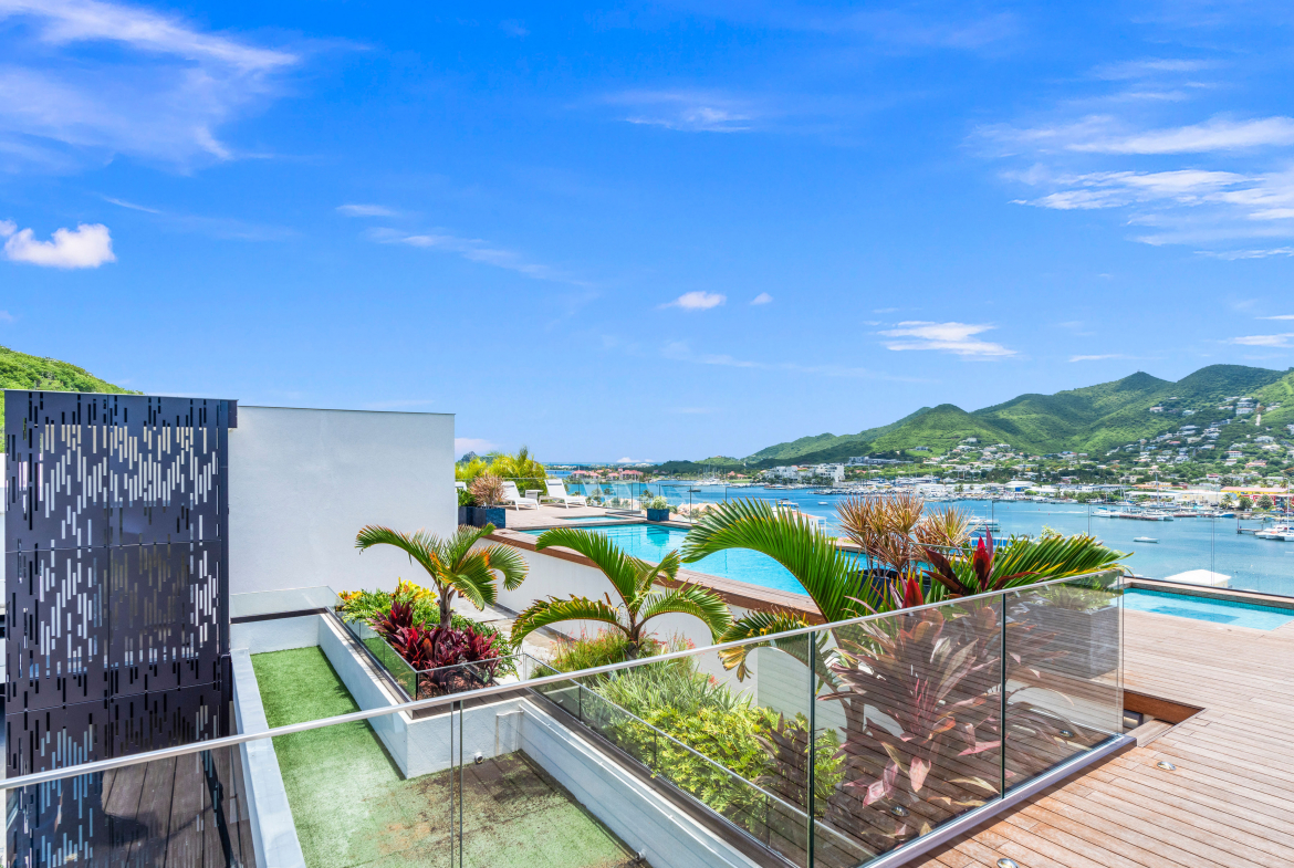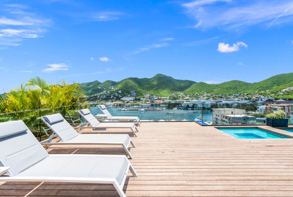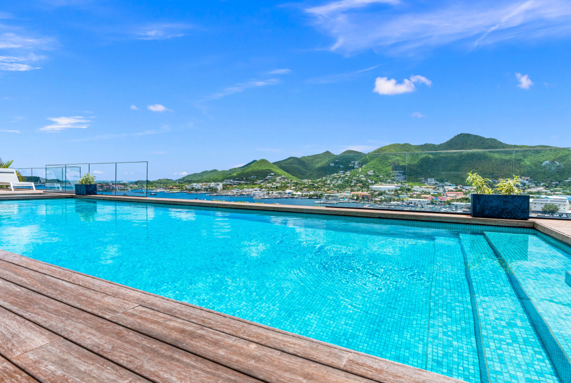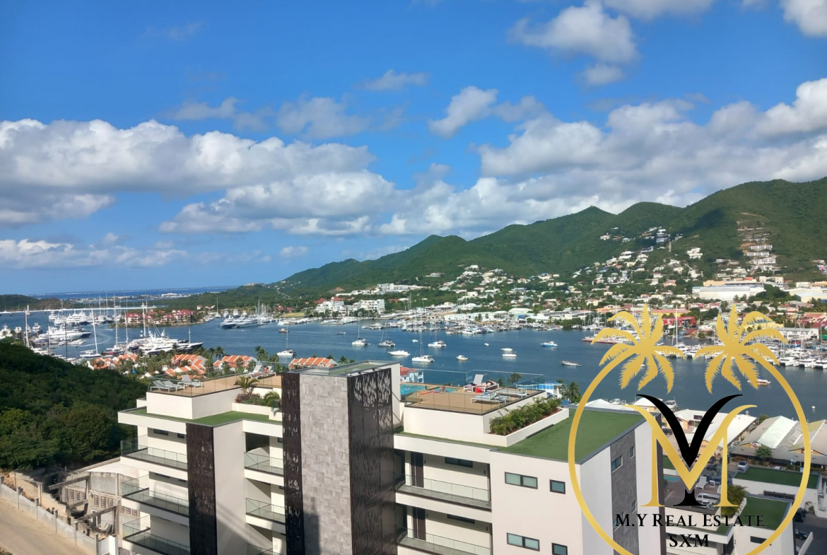 This newly completed 1-bedroom, 1-bathroom apartment at The Hills, Simpson Bay, offers 54 square meters of elegant living space, with stunning views over the lagoon and Simpson Bay.